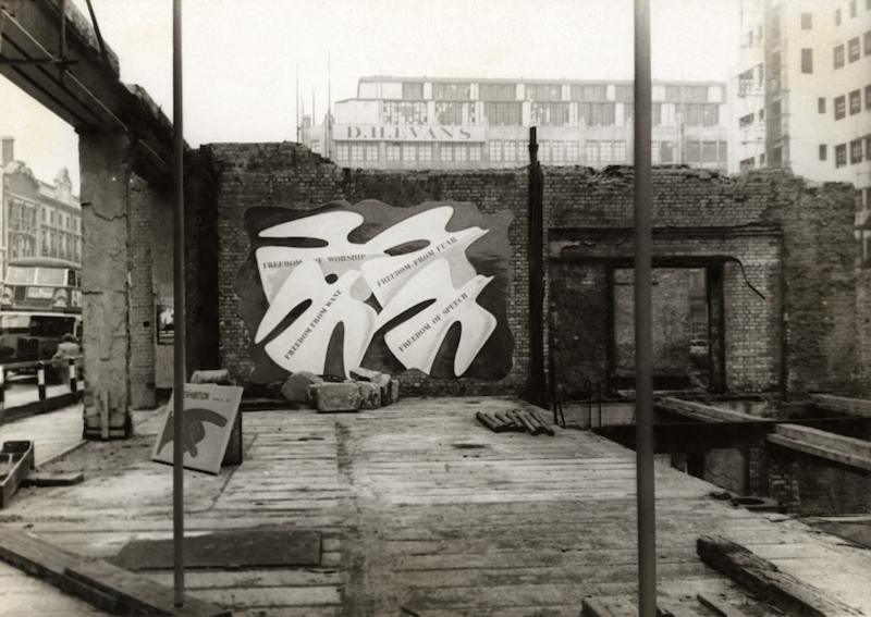Background Image: AIA for Liberty Exhibition (entrance), FHK Henrion Archive, University of Brighton Design Archives